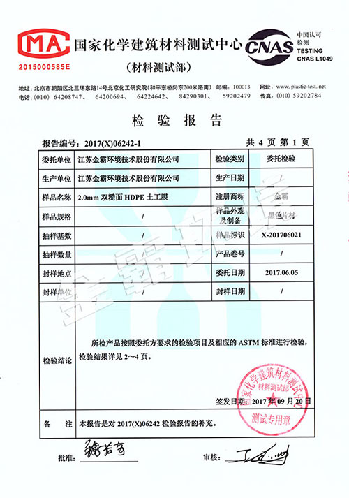 HDPE雙糙面膜檢測(cè)報(bào)告